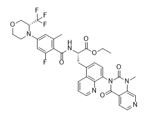 ethyl (S)-2-(2-fluoro-6-methyl-4-((R)-3-(trifluoromethyl)morpholino)benzamido)-3-(8-(1-methyl-2,4-dioxo-1,4-dihydropyrido[3,4-d]pyrimidin-3(2H)-yl)quinolin-5-yl)propanoate